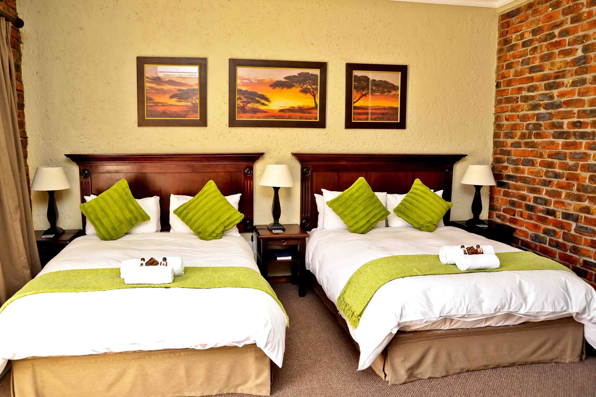 Queen size bed, Air-conditioning, DSTV, Bar Fridge, Coffee/Tea making facilities, Lock-up safe & Hairdryer.